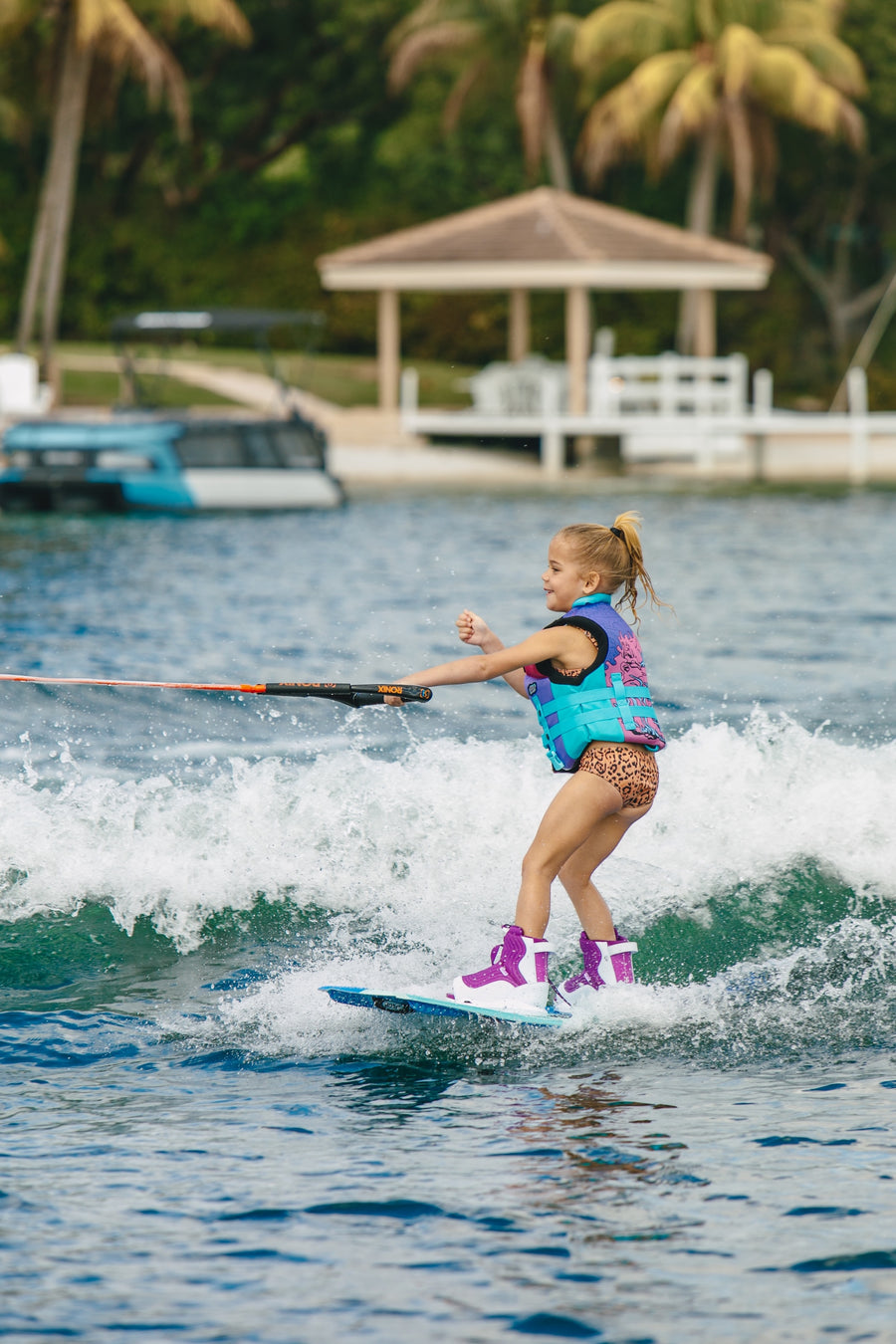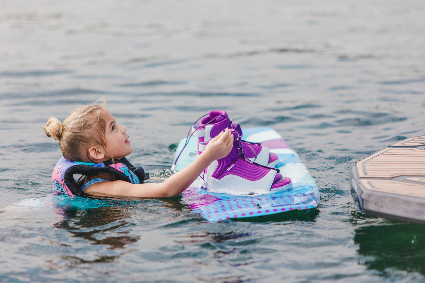 Ronix's fully loaded, easy-entry August Wakeboard Bindings are the ideal fit for kids; the first of their kind, crafted specifically for the next generation. Breathe easy, knowing they’re built on our MainFrame chassis to accommodate growing feet and our AutoLock lacing mechanism ensures a secure, comfortable fit.
