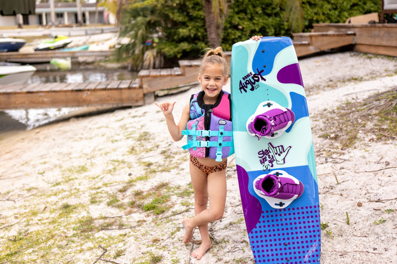 Designed with young rippers in mind, the Ronix August wakeboard is the perfect blend of stability and progression. Ronix crafted an asymmetrical shape to account for the unique position of wakeboarding—allowing for a thinner, sharper rail on toeside, and extra volume for lift off the wake. Plus, Grom Glass technology ensures a lighter layup with an enhanced connection to the water. With a rockerline ideal for a relaxed, balanced position, this board helps you shred like a pro!